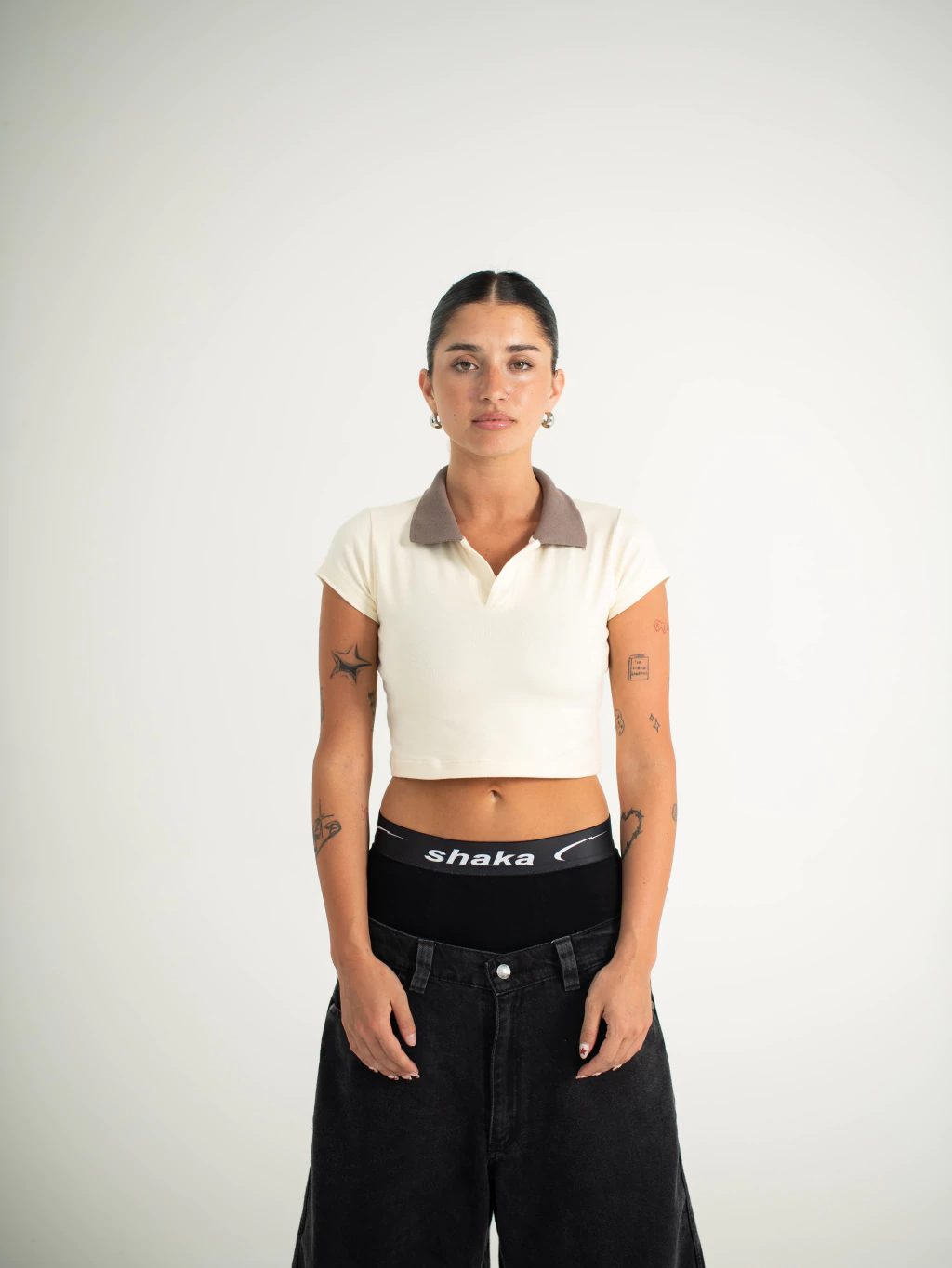 Tela jersey 24/1 con lycra y cuello tejido a tono con estampa.